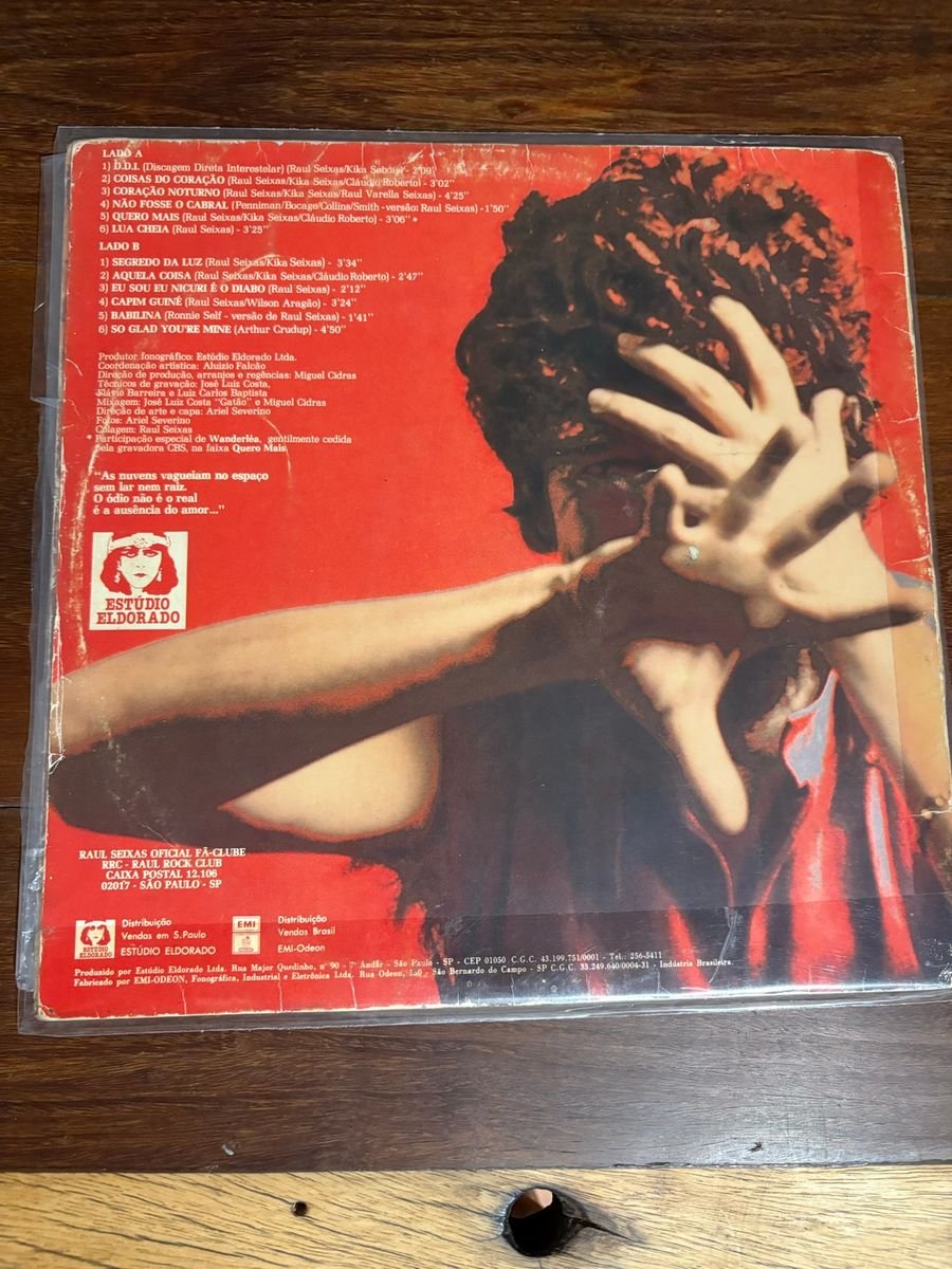 – Faixa 1 Lado A com uma queimadura no vinil (toca a música, mas a agulha pula na queimadura)
