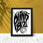 - A moldura é feita de madeira pinus reflorestada pintada na cor preta fosca e já apresenta suporte para pendurar na parede;
